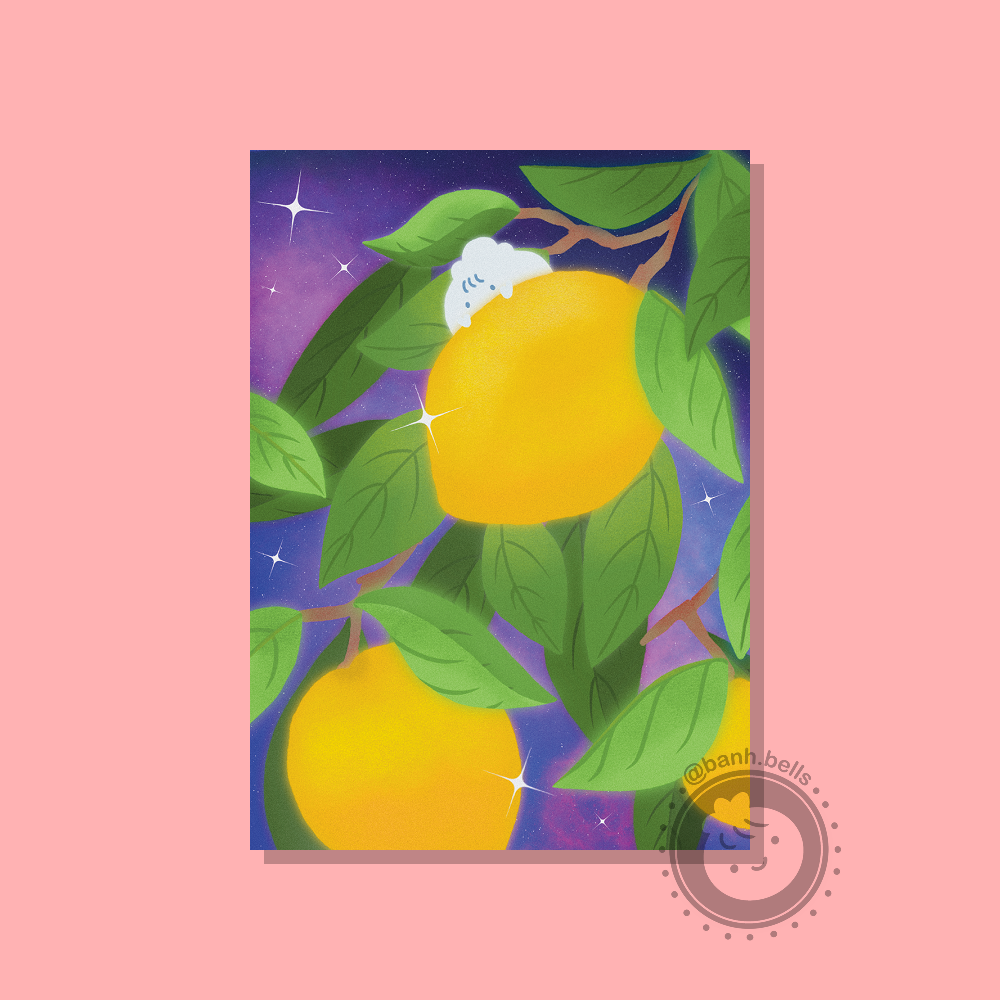 5” x 7” print of Banh running around in a nemophila flower field. Inspired by the time I went to Maishima Sports Island in Osaka!
